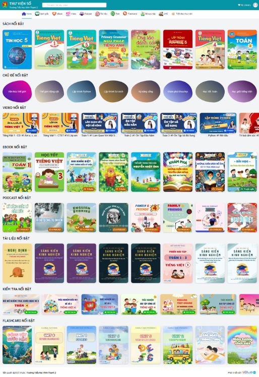 Ebook: Nhà trường cung cấp Ebook bộ sách giáo khoa, Ebook sách giáo viên mà trường đã chọn lựa và các Ebook học tiếng Anh bằng AI hay eBook tham khảo lên thư viện số để học sinh và giáo viên tham khảo khi không mang sách giấy bên cạnh.